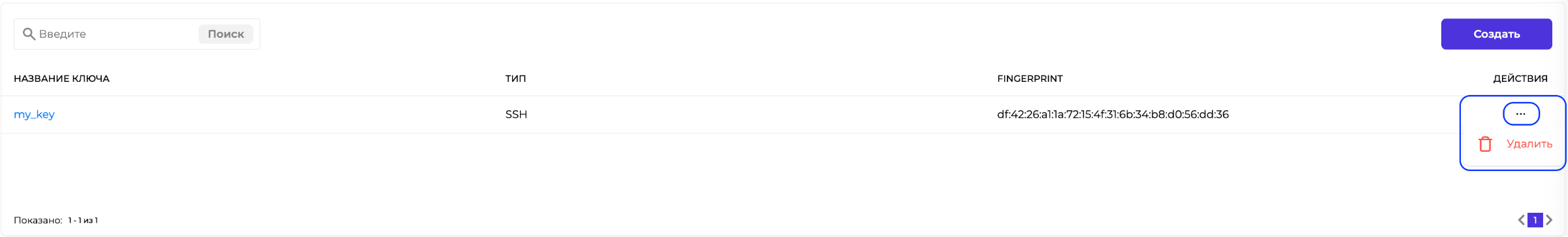 - Для удаления ключей нужно перейти во вкладку «Вычислительные ресурсы» выберите категорию «KeyPairs» в колонке «действия» нажмите на