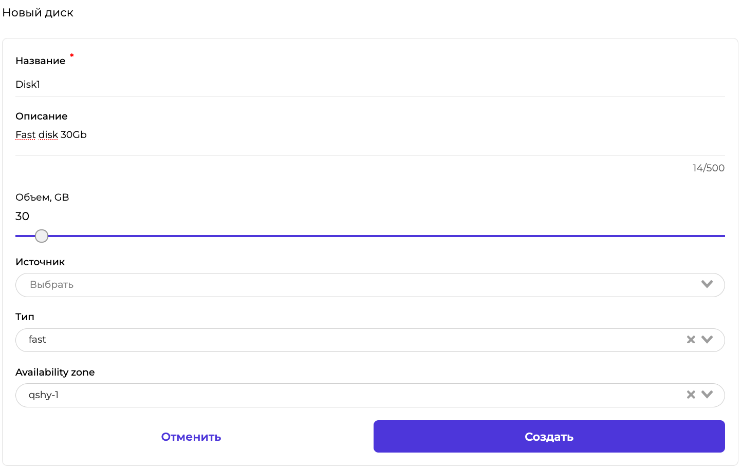 На вкладке «Диски, бэкапы и снэпшоты» откройте вкладку «Диски» и выберите категорию «Создать диск».