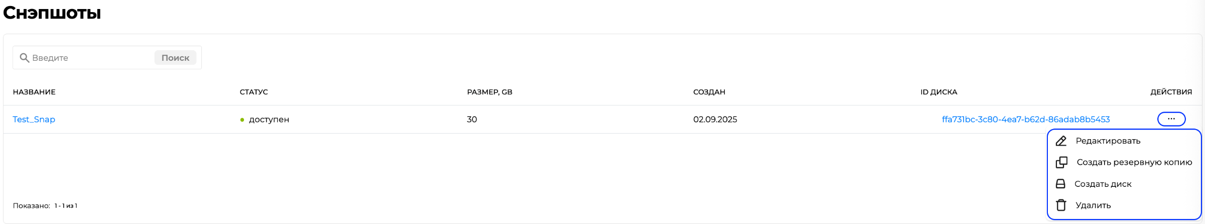 Полное удаление выбранного снэпшота с сервера, после чего его восстановление будет невозможно. Перед удалением рекомендуется убедиться, что резервные копии данных созданы и актуальны. |