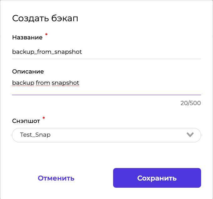 Задать понятное имя и добавить описание для снэпшота, чтобы упростить его поиск и дальнейшее использование. |