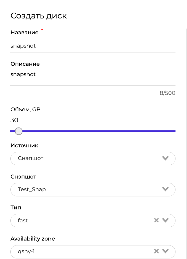 Выбрать нужный тип диска: encr_fast – быстрый диск с поддержкой шифрования. Обычно это NVMe или высокопроизводительные SSD с низкой задержкой. Подходит для баз данных, кэширования и задач, требующих высокой скорости доступа. standard – стандартный диск без шифрования. Аналогично encr_standard, но без дополнительного уровня защиты данных. Может использоваться для некритичных задач, где шифрование не требуется. fast – быстрый диск без шифрования. По характеристикам аналогичен encr_fast, но без шифрования. Подходит для высоконагруженных приложений, требующих высокой скорости дисковых операций. |