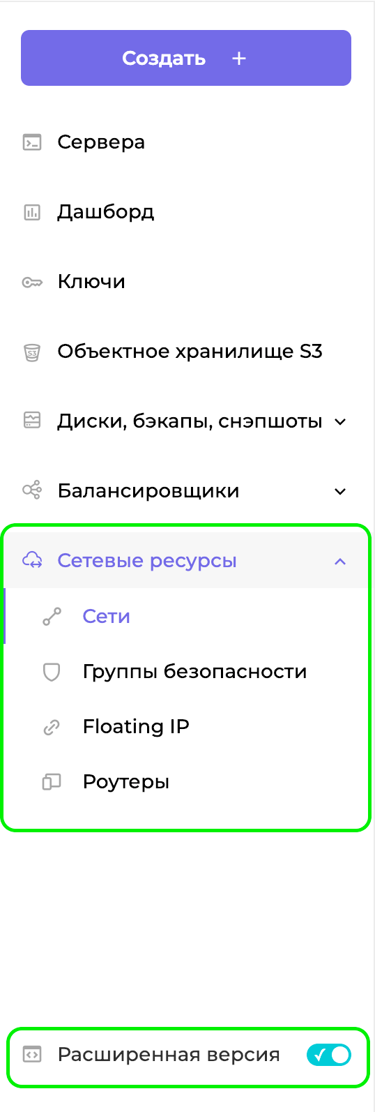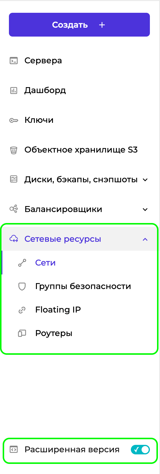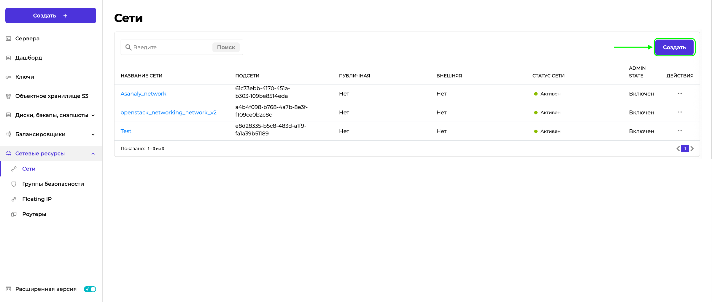 На вкладке «Сетевые ресурсы» откройте вкладку «Сети» и выберите категорию «Создать сети».