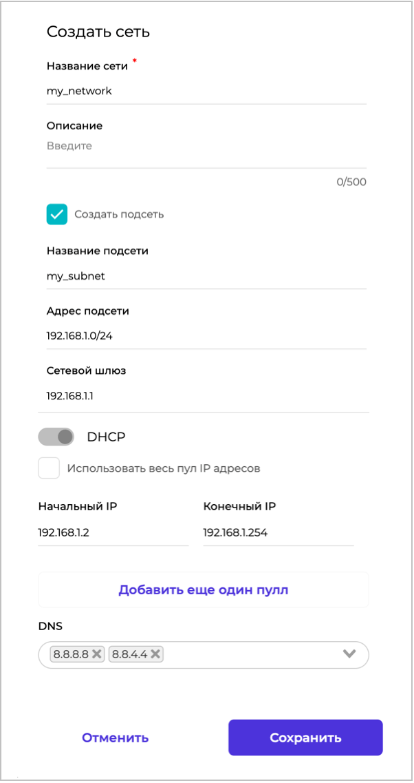 - Создание сети и подсети и подключение локальной сети к роутеру