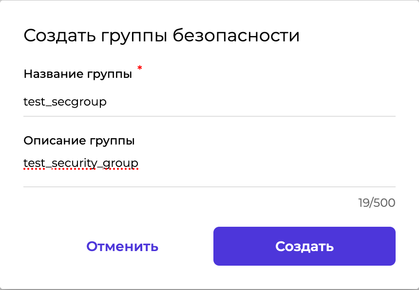 На вкладке «Сетевые ресурсы» откройте вкладку «Группы безопасности» и выберите категорию «Создать группу» .